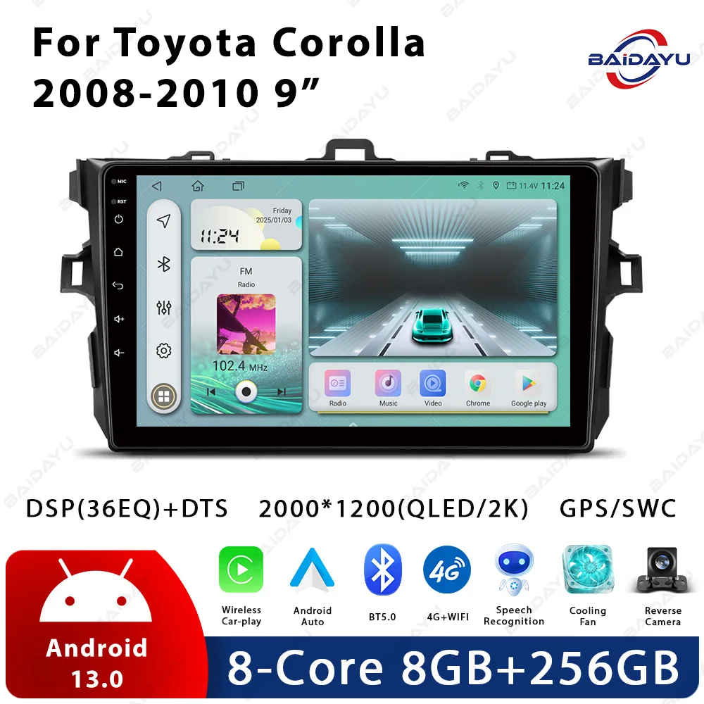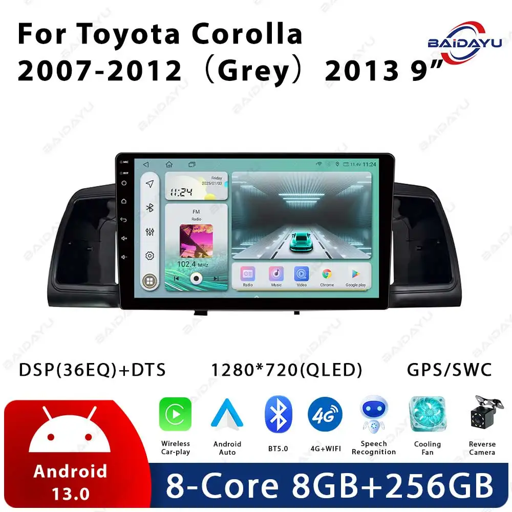 Baidayu For Toyota Corolla 2007-2013 Carplay 9 Inch Android 13 Auto Car Radio Multimedia Player BT GPS Smart car systems 64G $216.79
