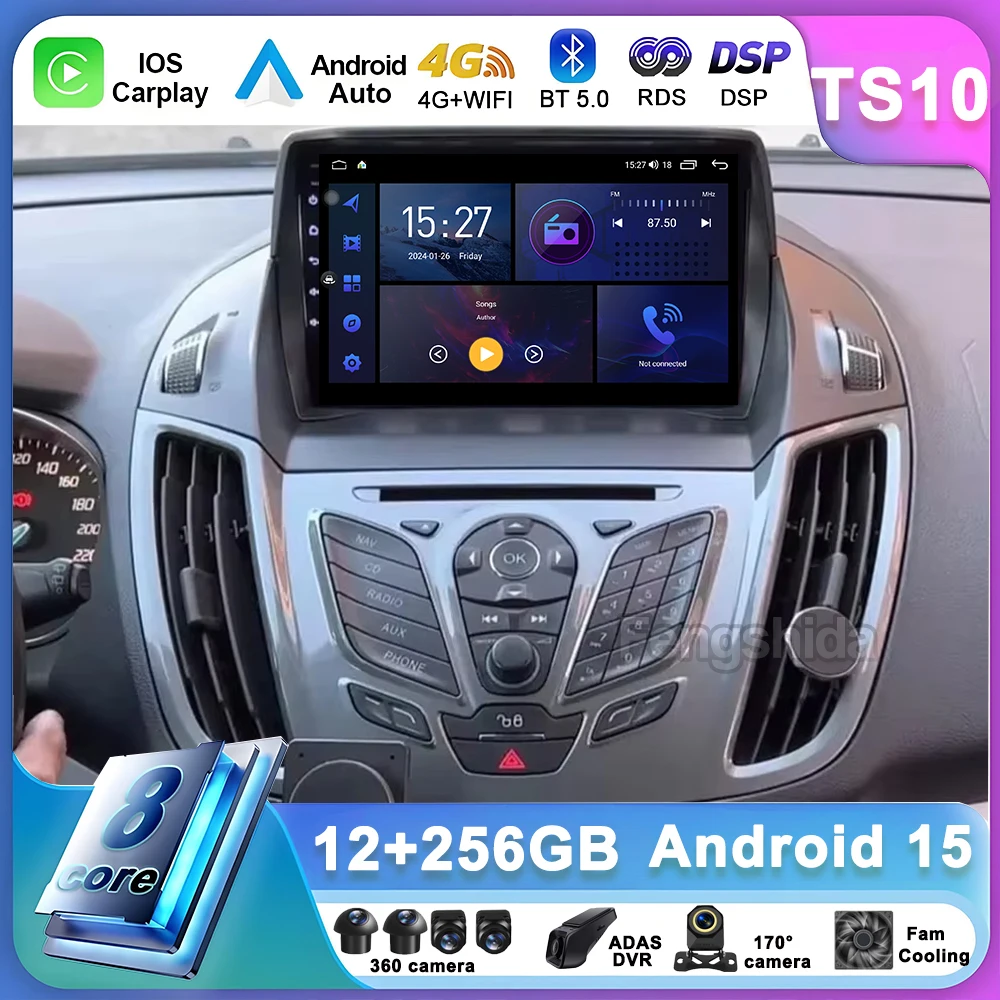 Android Carplay Monitor For Ford C-MAX Kuga 2 Escape 3 2012-2019 Smart Car Systems Multimedia Video Player 5G Wifi GPS Display $76.81