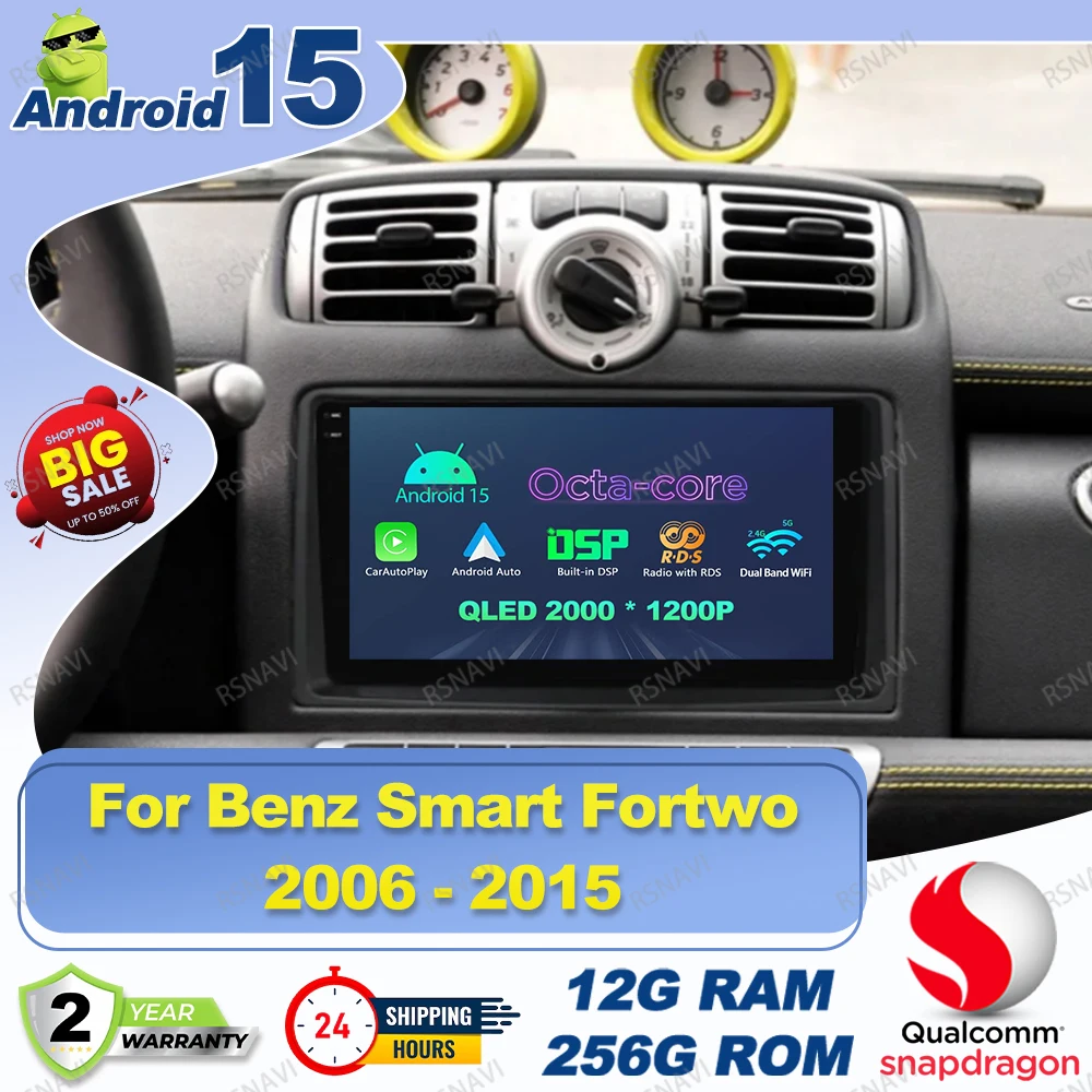 Android 15 Car Radio For Benz Smart Fortwo 2006 - 2015 5G WIFI Snapdragon Wireless BT Systems WIFI+ 4G LTE Navigation QLED DVD $93.75