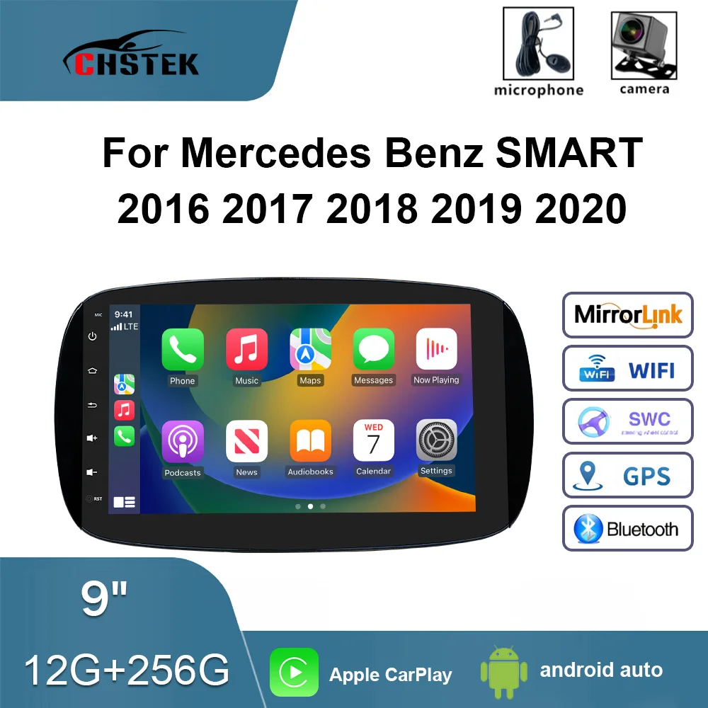 CHSTEK Car Radio For Mercedes Benz SMART 2016 2017 2018 2019 2020 Wireless Carplay Android Bluetooth WIFI 4G GPS Multimedia 9’’ $109.99