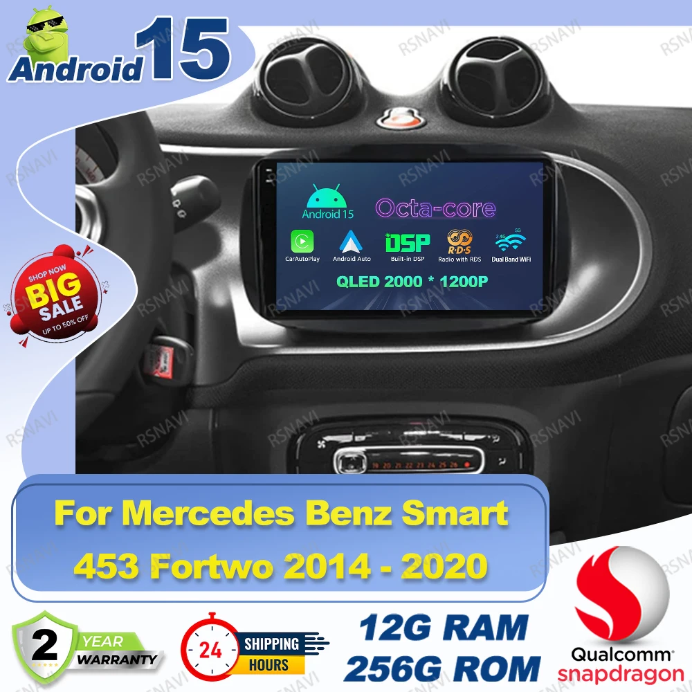 Android 15 Car Radio For Mercedes Benz Smart 453 Fortwo 2014 - 2020 RDS Snapdragon Carplay WIFI+ 4G LTE 9/10 Inch Stereo AUTO BT $94.47