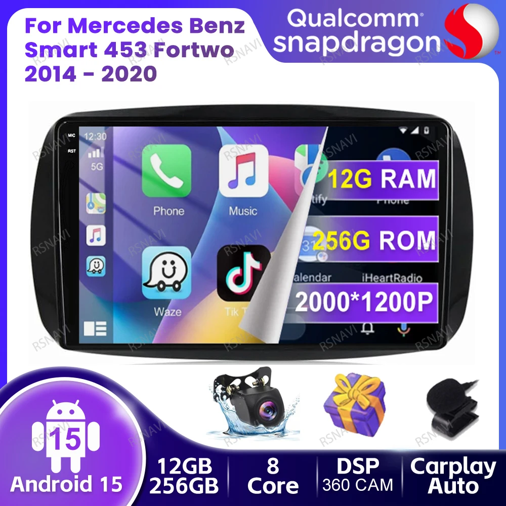 Car Radio Android 15 For Mercedes Benz Smart 453 Fortwo 2014 - 2020 QLED Head Unit Qualcomm DSP Viedo Player Stereo DVD 4G LTE $100.85