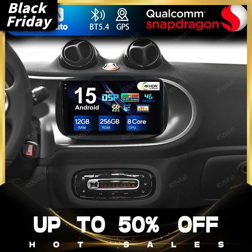 Android 15 For Mercedes Benz Smart 453 Fortwo 2014 - 2020 Head Unit 5G WIFI Car Radio BT GPS DSP Stereo Navigation Multimedia $83.78