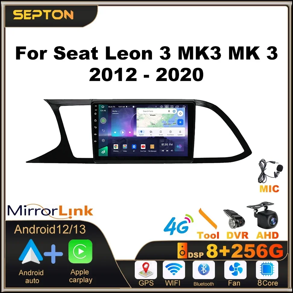 SEPTON Smart Car Radio System for Seat Leon 3 MK3 MK 3 2012 - 2020 4G Multimedia GPS WIFI Player Autoradio 2din Carplay Screen $92.06