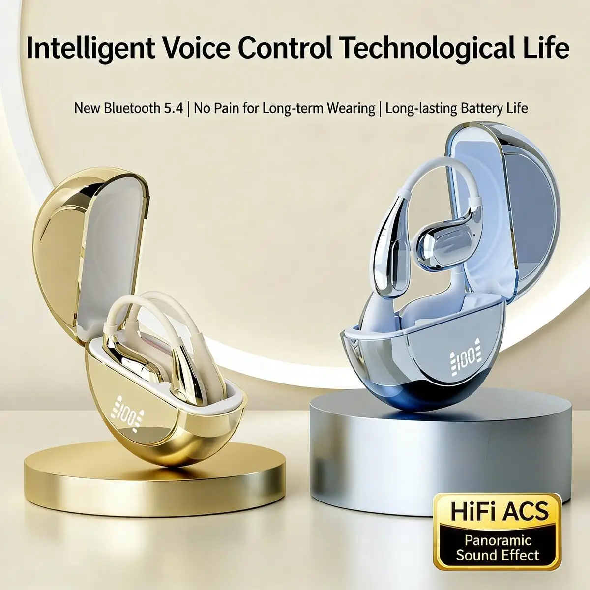New M30 Bluetooth Open-Ear Earhook Headphones ENC Smart Noise Reduction Waterproof Power Display Long Playtime for Music Sport $11.63