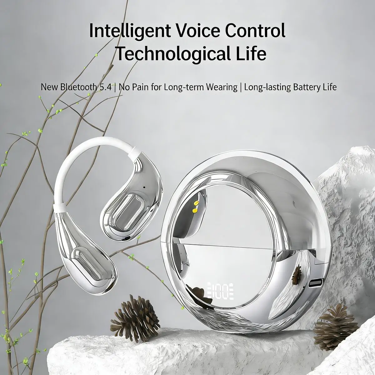 M30 Open-Ear Bluetooth Earhook Earphones Smart Noise Reduction Waterproof LED Power Display Long Battery Life for Sports Music $11.63