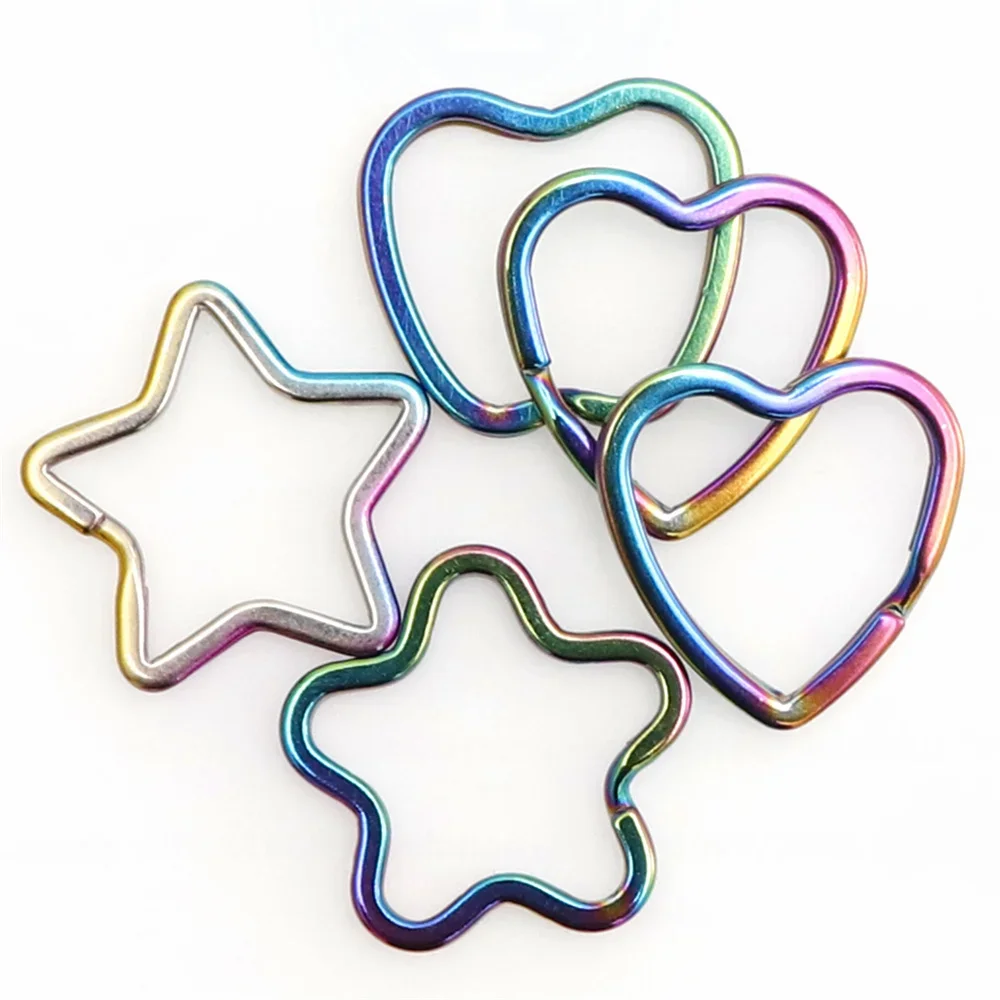 5PCS Rainbow Keychains Split Ring Heart Star Apple Metal Key Chain Ring Split Rings Unisex Keyring Keyfob DIY Accessories $3.77