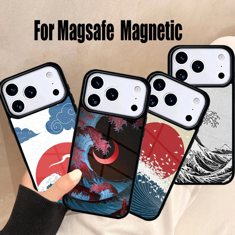 FLYING CRANES SEA WAVES Japanese Art Phone Case For iPhone 17 Air 16e 15 14 13 12 11 Pro Max Plus Magsafe Magnetic Cover $6.53