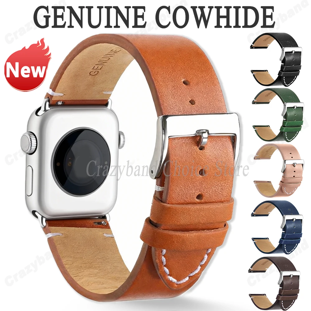 Genuine Cow Leather for Apple Watch Series 10 9 8 7 6 SE 5 Watch Band 38/40/41mm 42/44/45/49mm for Iwatch Ultra 2 Business Strap $6.84