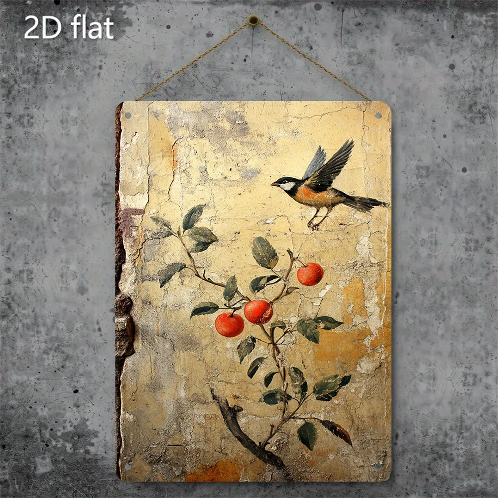 Vintage Metal Tin Sign 8x12 inch, Rustic Floral Garden Wall Art with Roman Mural Birds Apple Tree, Waterproof Rustic Decor $2.95