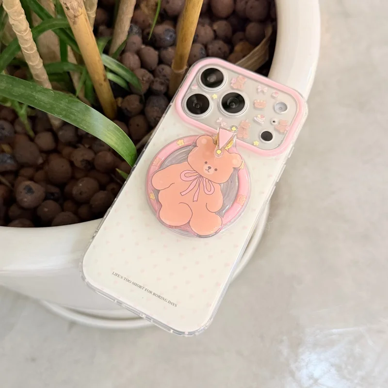 Korean Ins Pink Polka Dots Magnetic Phone Case For iPhone 17 Pro 16 15 14 Pro Max Cover with Magsafe Stand Holder Cute Cases 17 $9.90