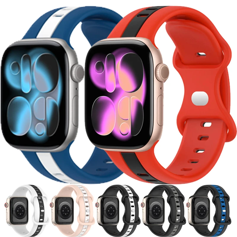 Two-color Soft Silicone Strap For Apple Watch Ultra 3/2 Band 49/45//41/44/42/46mm Breathable Bracelet iWatch 11 10 9 8 7 6 5 SE $4.09