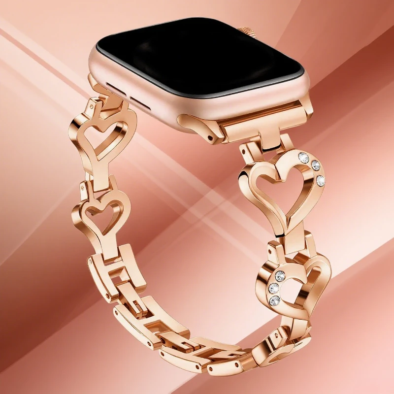 Luxury Rose Gold Metal Strap For Apple Watch Band 44mm 40 38 49 46 42 45 41mm Women Bracelet For iWatch S10 9 8 7 6 5 4 SE $7.73