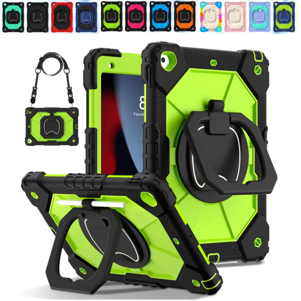 Heavy Duty Case for iPad 10.2 9th 8th 7th 10.2 inch Silicone + PC Shockproof 360° Rotating Stand Tablet Cover with Straps $22.81