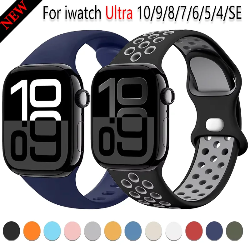 Watchband For Apple Watch 10 46mm 42mm 9 8 7 45mm 41mm Ultra 2 49mm Silicone Sports Wristband iWatch 6 5 4 SE 44mm 40mm Bracelet $3.37