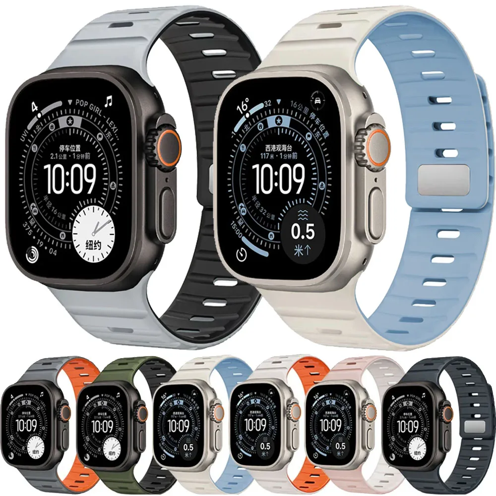 Magnetic Silicone Strap For Apple Watch Ultra 3/2/1 49mm 11 10 46/42mm Sport Bracelet Band iWatch 9 8 7 6 5 4 SE3 45/41/44/40mm $5.04