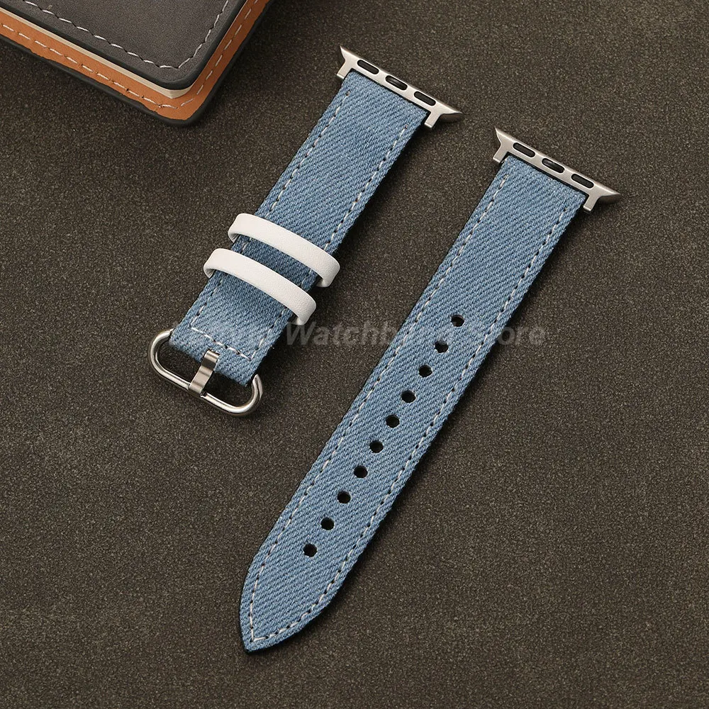 Women Men Denim Canvas Fashion Comfortable Watch Strap for Apple Watch Series 1-11 Ultra SE 38-49mm Wristband for iwatch $3.70