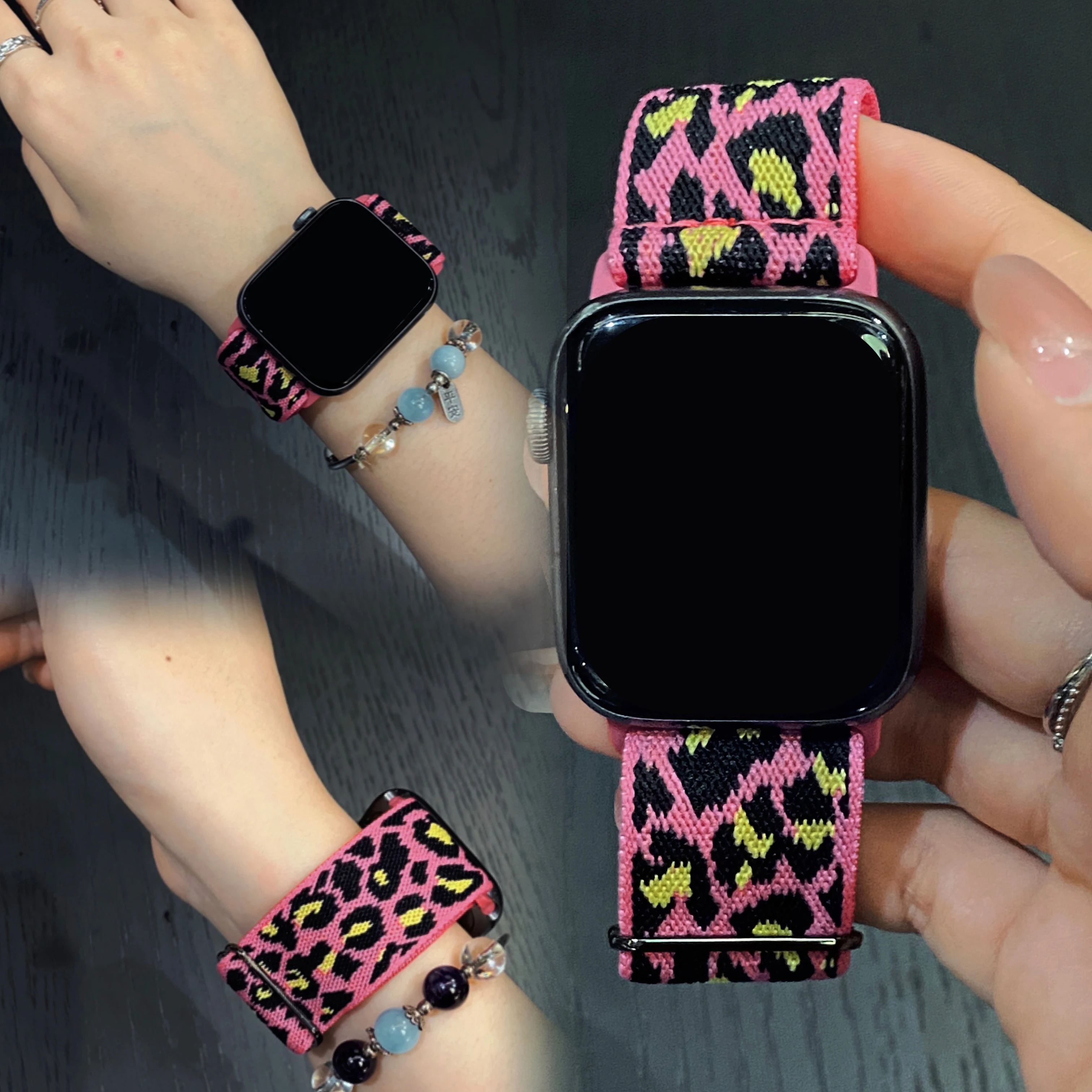 Stretchy Nylon Band for Apple Watch 38-49mm, Adjustable Leopard Strap for iWatch Series 10-2/SE/Ultra 2 $3.38