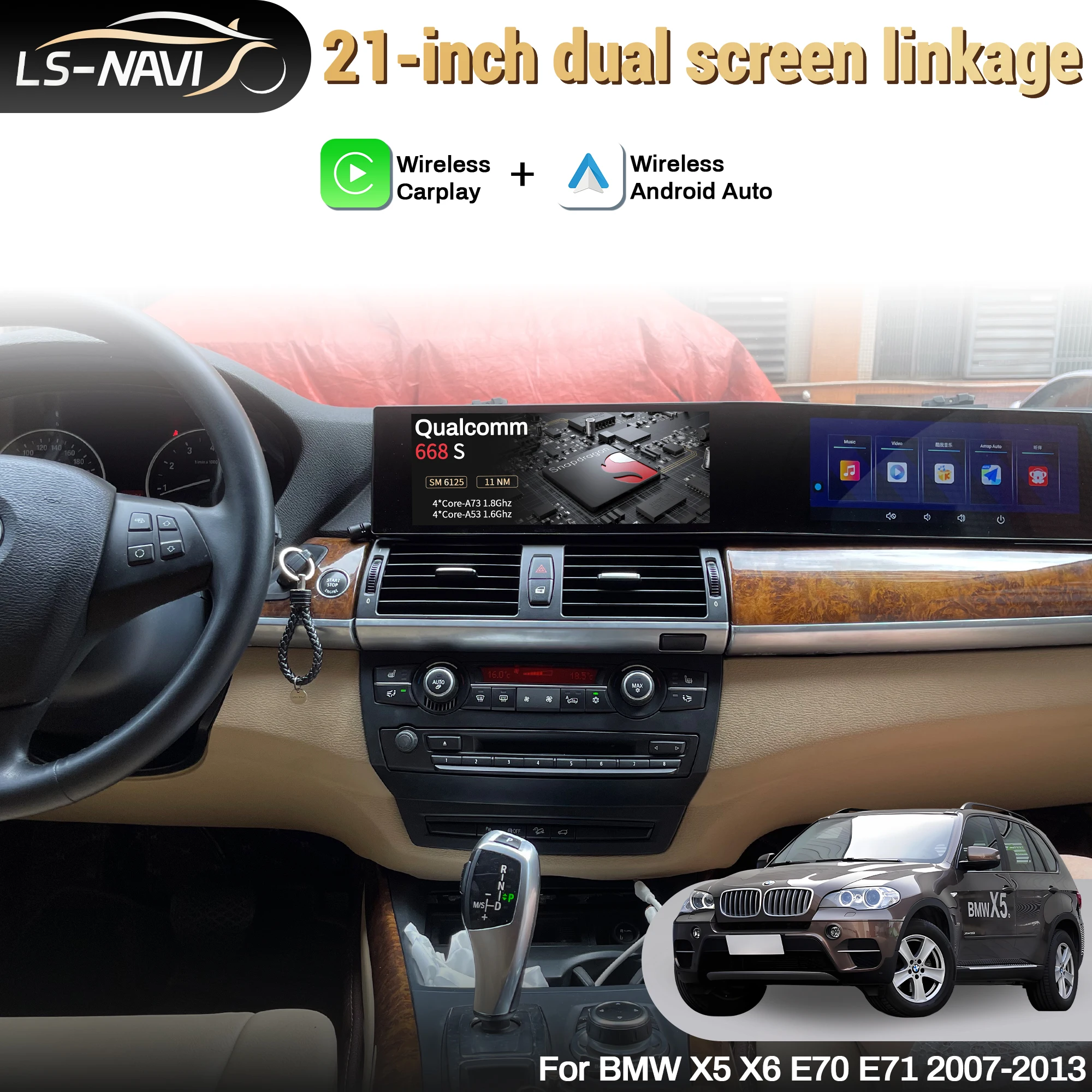 21 inch For BMW X5 X6 E70 E71 2007-2013 Android Radio Wireless Apple Bluetooth Carplay Multimedia Touch Screen Stereo $899.80