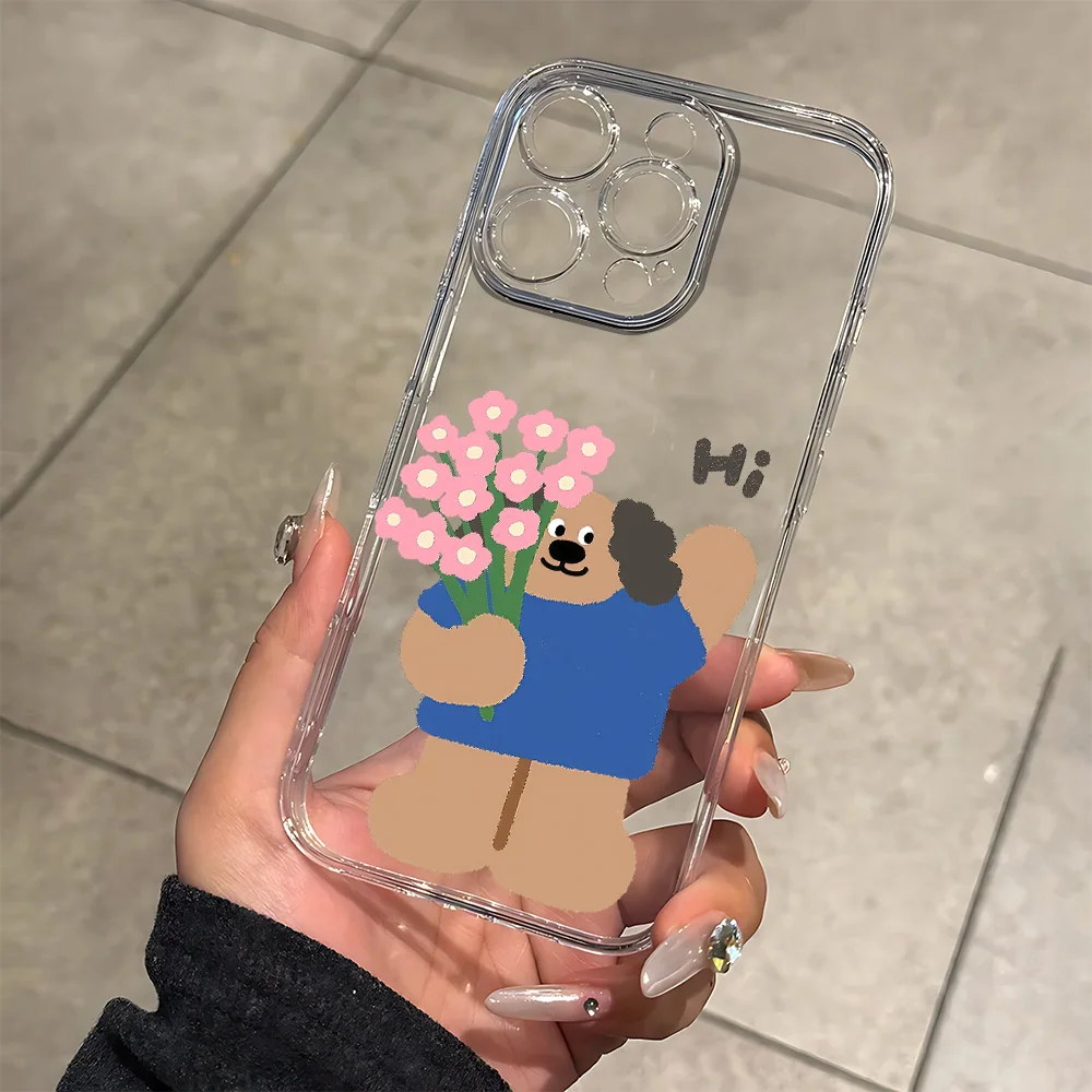 Hug Flower Cute Dog Silicone Phone Case for IPhone 17 16 15 14 13 12 11 Pro Xs Max Air Mini 7 8 6 6s Plus SE 2020 2022 Cover $1.82