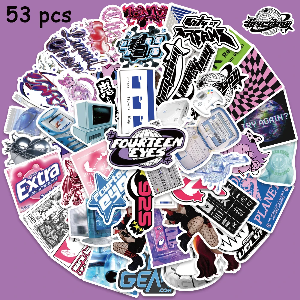 53pcs Retro Y2K Sticker Fashion Cool Decal For Phone Bicycle Helmet Guitar Magazine Backpack Decoration Sticker $3.60