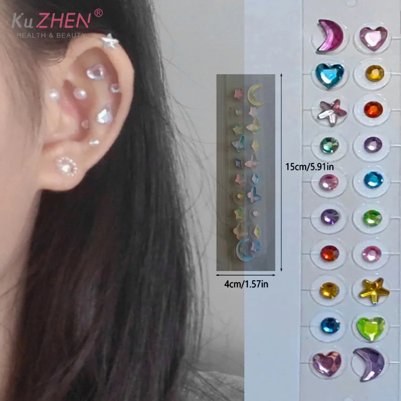 10 Pcs Fashion Rhinestone Alien Colored Diamonds Ear Point Stickers Ear Pressure Stick Acupuncture Auricular Ear Sticker Massage $2.39