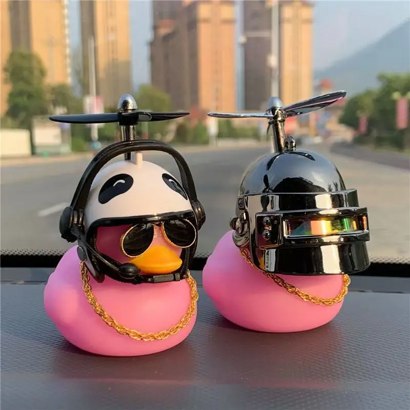 1PC Bike Car Cute Pink Rubber Squeeze Duck with Propeller Helmet Motorcycle Decoration Auto Bicycle Bell Ducks Decor Ornament $4.19