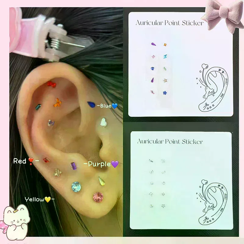 10 Pc Ear Pressure Stick Acupuncture Auricular Ear Sticker Massage s Fashion Rhinestone Alien Colored Diamonds Ear Point Sticker $5.62