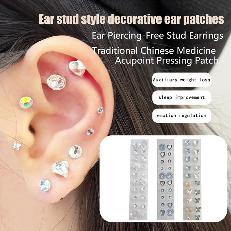 New Fashion Butterfly Flower Ear Point Stickers Rhinestone Acupuncture Auricular Ear Pressure Patch Massager for Stress Relief $2.99