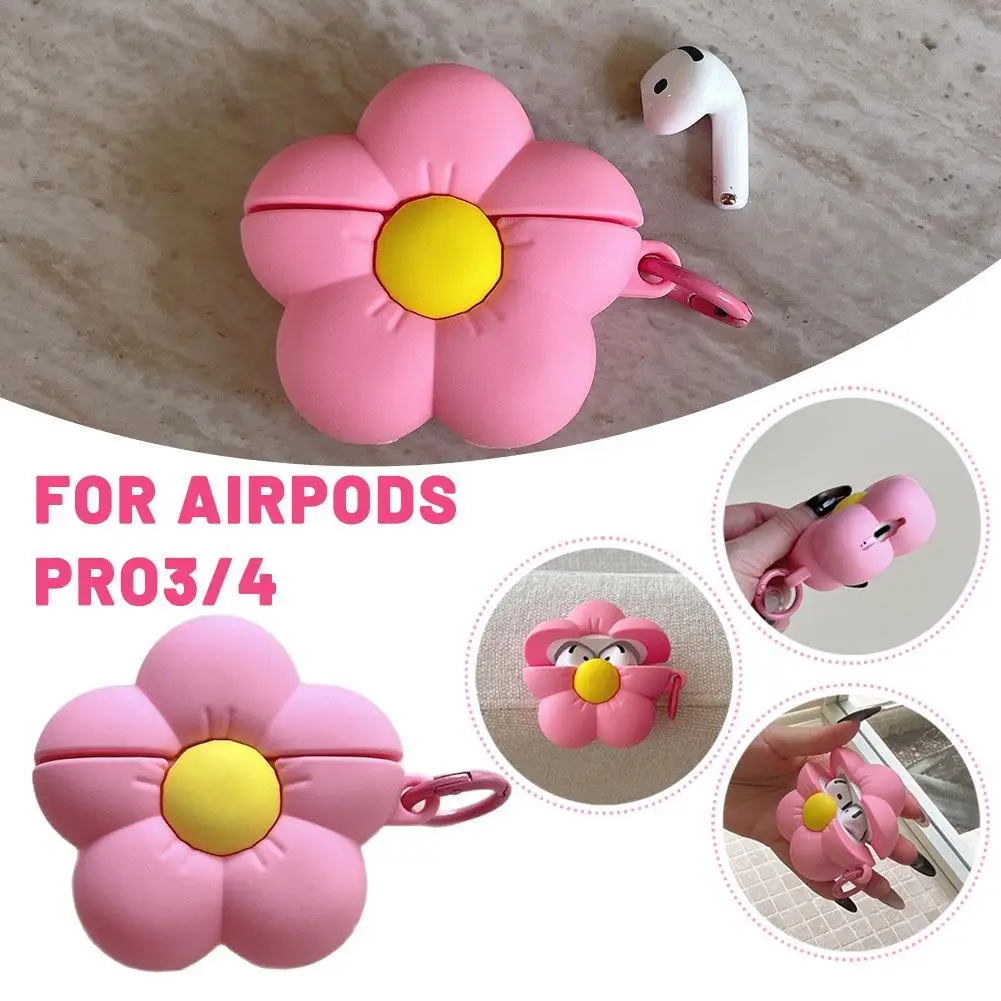 For Airpods Pro 3/4 3D Flower Fashion Earphone Protective Case Anti-fall Dustproof Earphone Case Cute Pink Flower Earphone Case $9.18