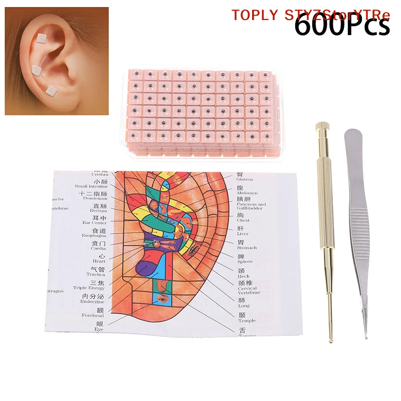 1 Set Multi-Condition Ear Seeds Acupuncture Auricular Sticker Kit 600pcs With Acupressure Chart Tweezer Auricular Probe $3.80