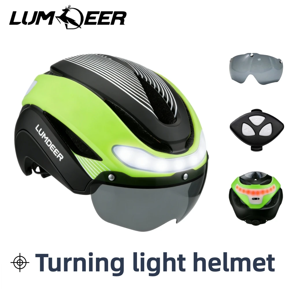 LUMDEER Road Bicycle Turn Signal Helmet With Magnetic Googles & Sun Visor Ride Racing Ultralight Adult Road Bike Front And Rear $31.85