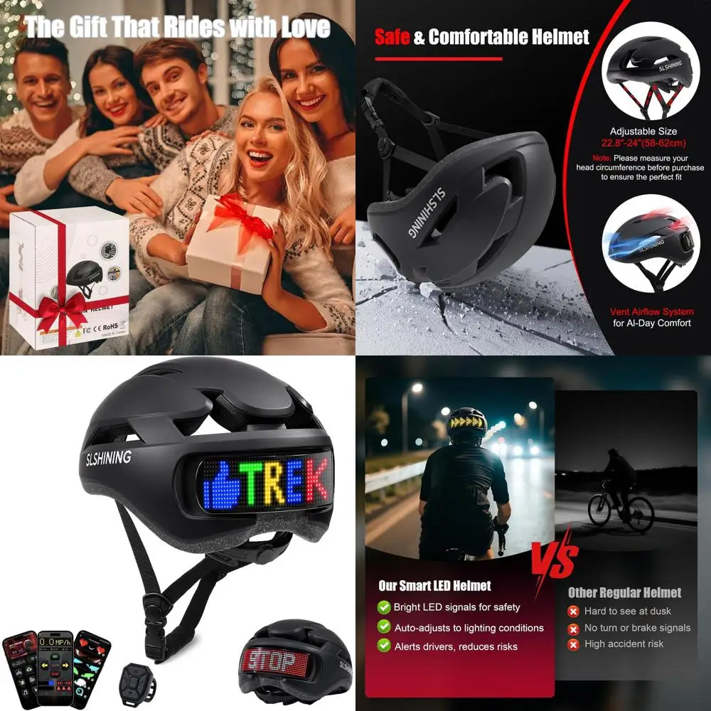 Bike Helmet, Bicycle Helmets with Light, 360° High Visibility LED Display, Lightweight Adjustable Mountain Bike Helmet with Turn $88.16