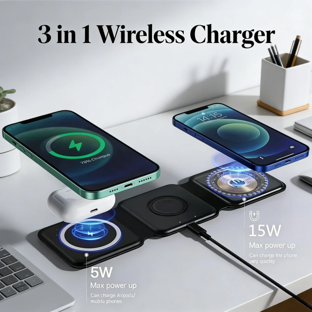 3 in 1 15W Foldable Wireless Charger Pad Stand For iPhone 17 16 15 14 Pro Max Airpods iWatch Fast Wireless Charging Dock Station $8.80