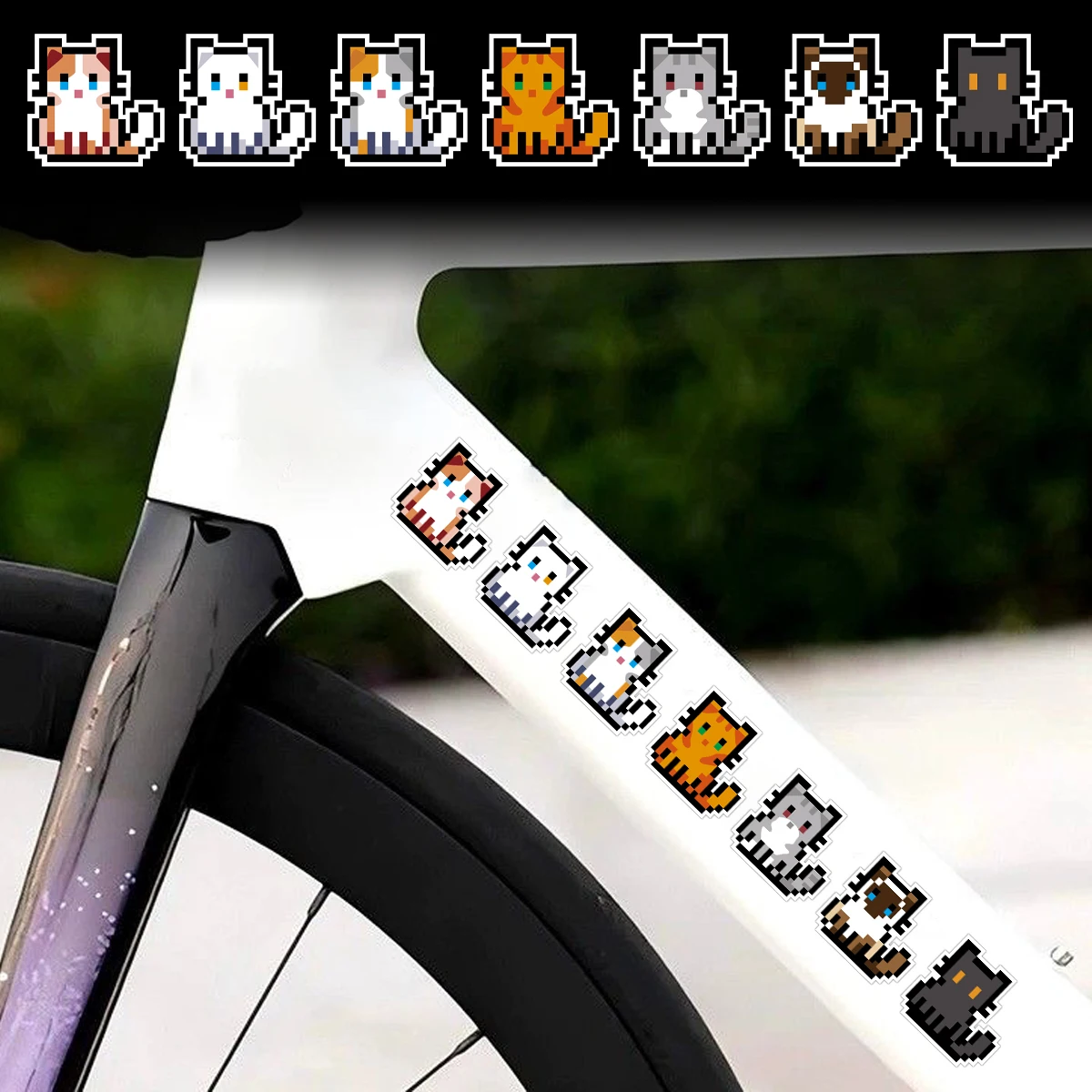 Pixel Kitten DIY Bike E-Bike Frame Reflective Stickers Bicycle Body Road MTB Bikes Tube Cycling Helmet Vinyl Accessories Decals $5.21