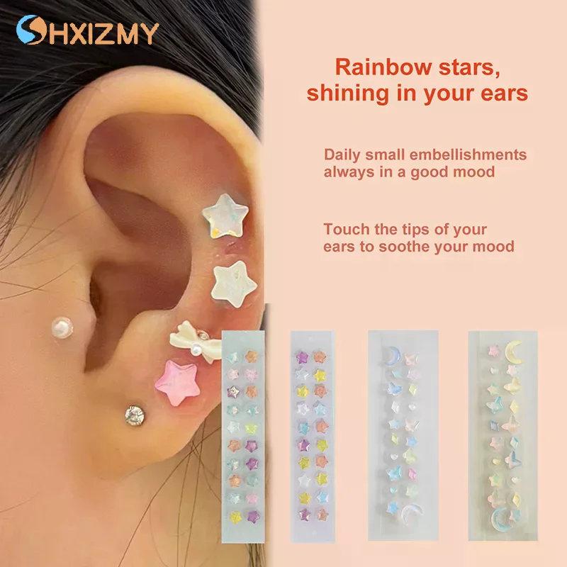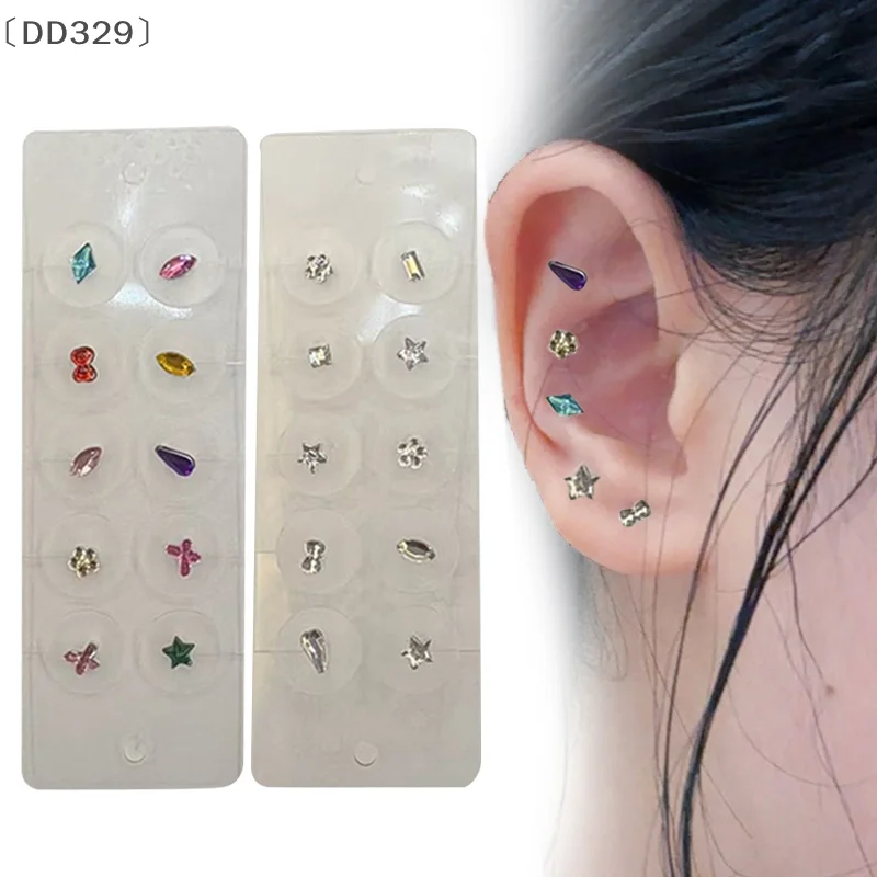 10Pcs/sheet Fashion Rhinestone Alien Colored Diamonds Ear Point Sticker Pressure Stick Acupuncture Auricular Ear Sticker Massage $5.04