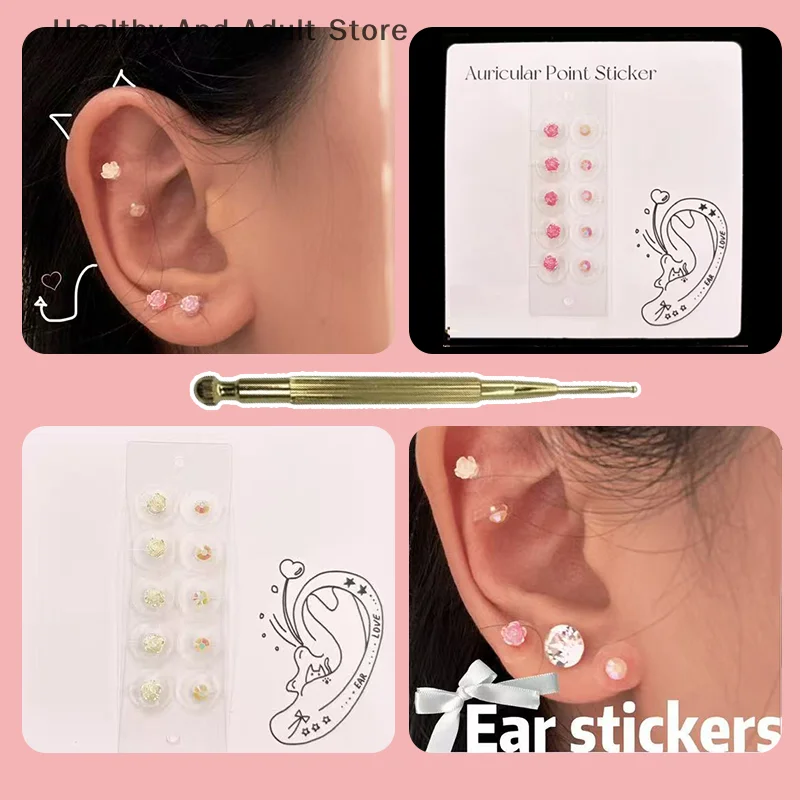 10 Patch Fashion Colorful Rose Round Rhinestone Ear Point Stickers Ear Pressure Stick Acupuncture Auricular Ear Stickers Massage $3.55