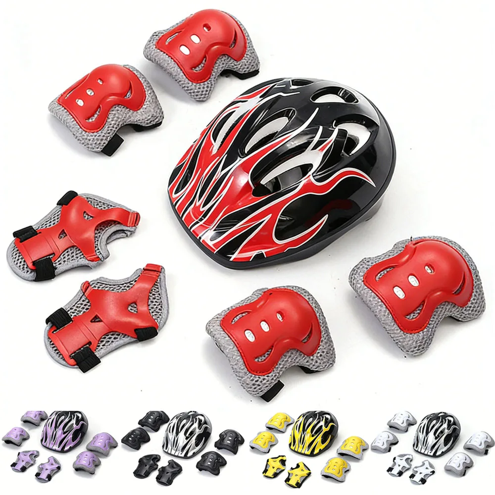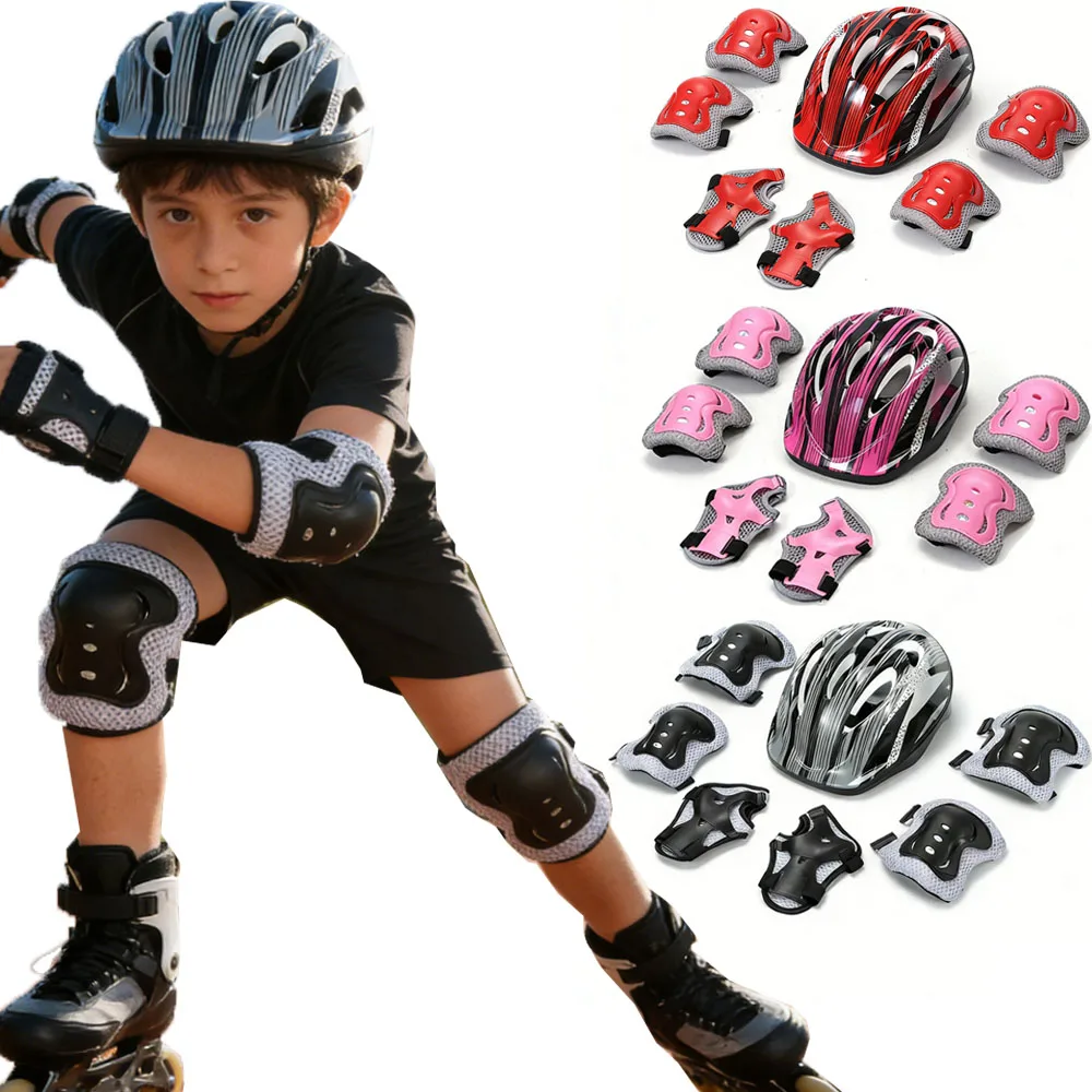 Skateboard Bike Helmet for kids Adjustable Knee Elbow Pads Wrist Guards Protective Gear Helmets Set Teens for Bicycle Cycling $10.93