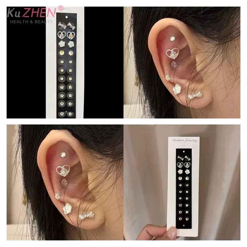 Fashion Bowknot Heart Flower Rhinestone Ear Point Stickers Ear Pressure Stick Acupuncture Auricular Ear Stickers Massage Jewelry $8.85