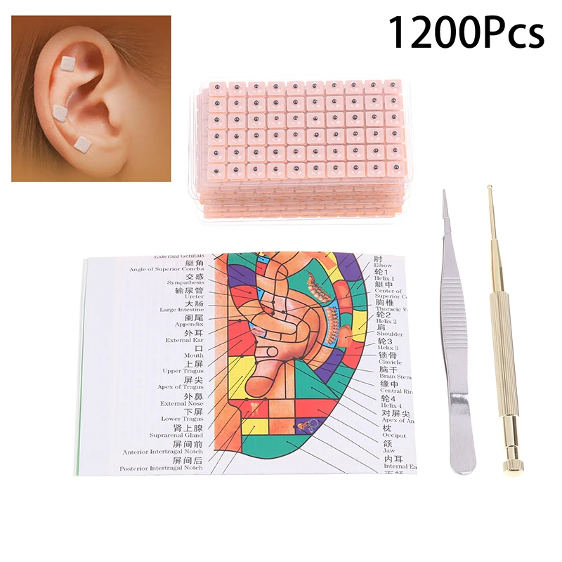 4 In 1 Set Multi-Condition Ear Seeds Acupuncture Auricular Sticker Kit 1200pcs With Acupressure Chart Tweezer Auricular Probe $3.52