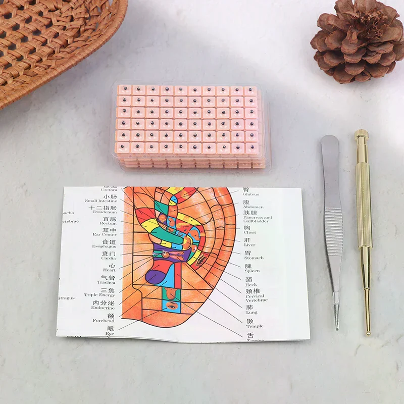 4 In 1 Set Multi-Condition Ear Seeds Acupuncture Auricular Sticker Kit 600pcs With Acupressure Chart Tweezer Auricular Probe $1.24