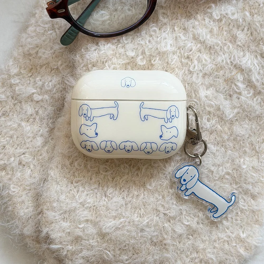 Cartoon Cute Blue Line Puppy Simple Style Soft Earphone Case for AirPods 4 With Pendant for AirPods 2 3 4 Pro 3 Protection Cover $5.34