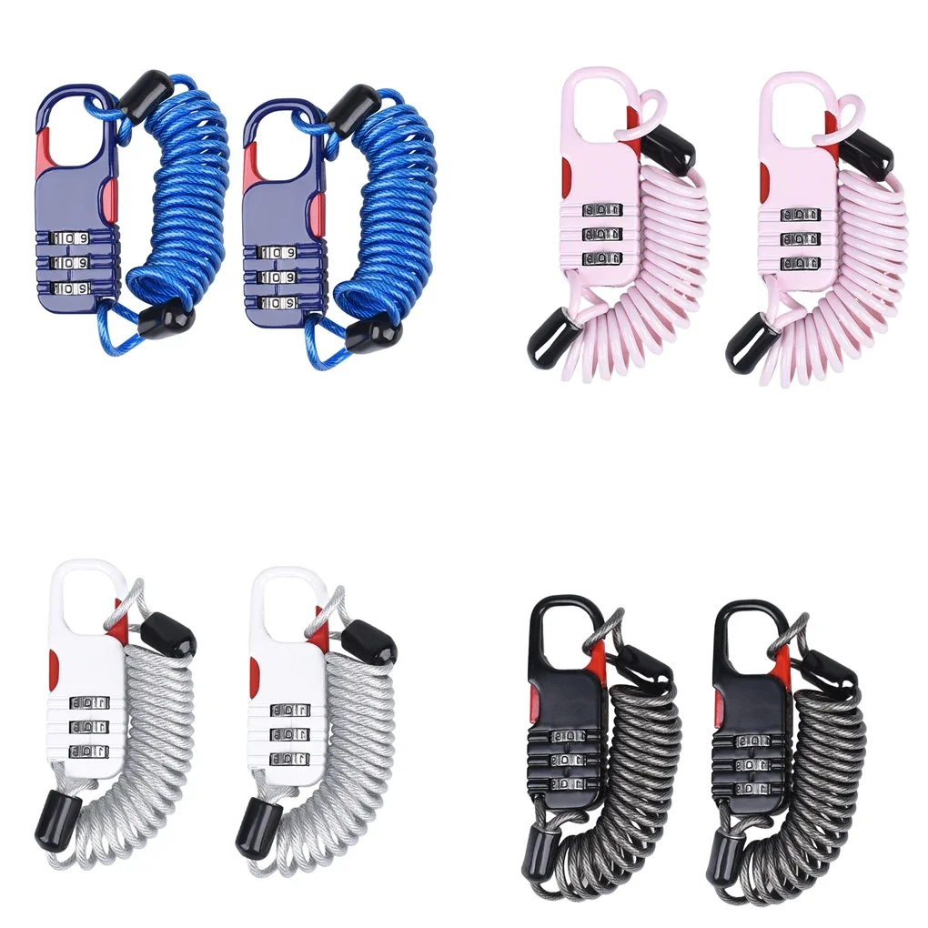 2PCS Bicycle Anti Theft Motorcycle Three Digit Password Combination Safety Cable Wire Rope Helmet Lock Safety Rope Lock $26.73
