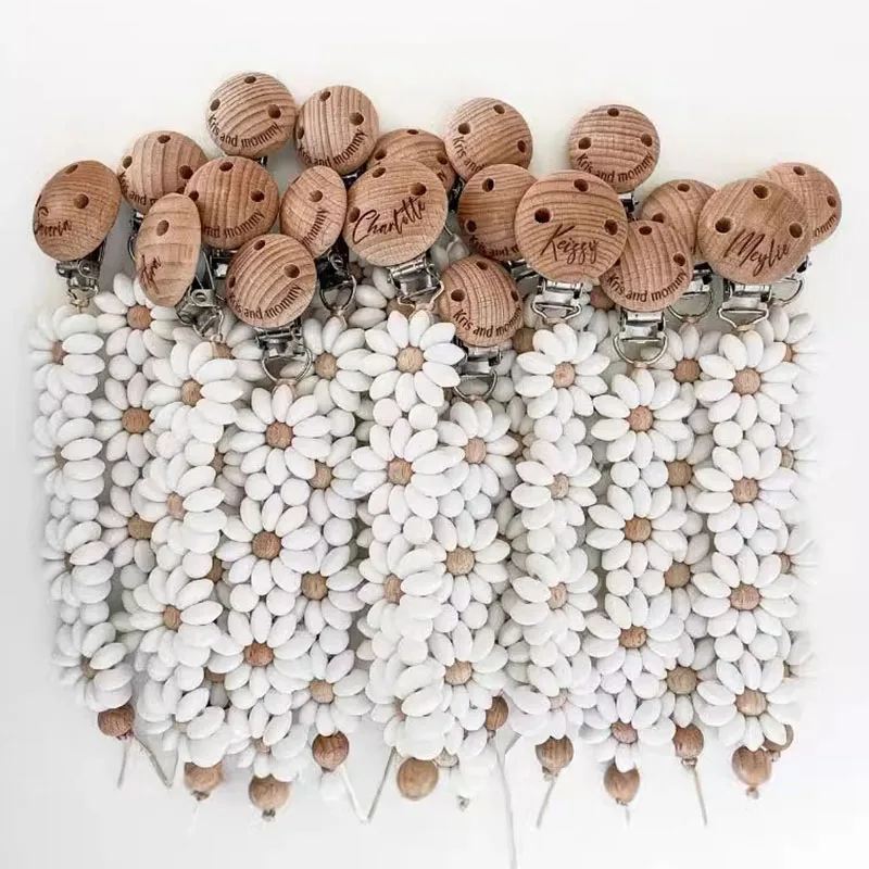 Custom Pacifier Clips Beech Wood Silicone Beads Dummy Chain Holder Newborn Soother Chains Nipple Holder Infant Teething Toy Gift $3.22
