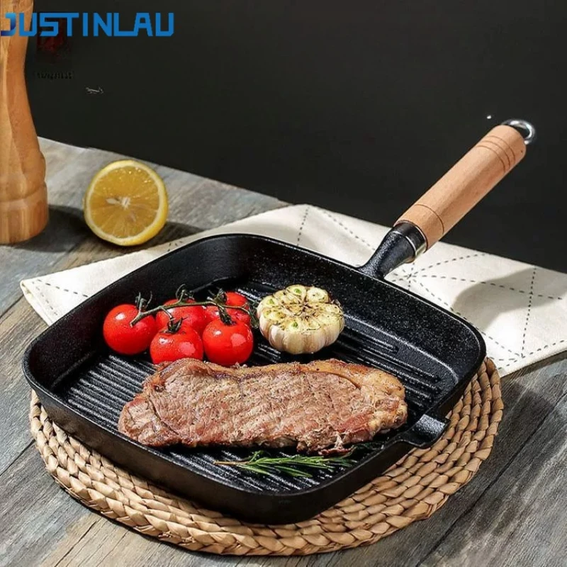 JUSTINLAU Uncoated Cast Iron Striped Steak Skillet Non-Stick Square Frying Pan with Drip Spout for Indoor& Outdoor Grilling Tool $42.46