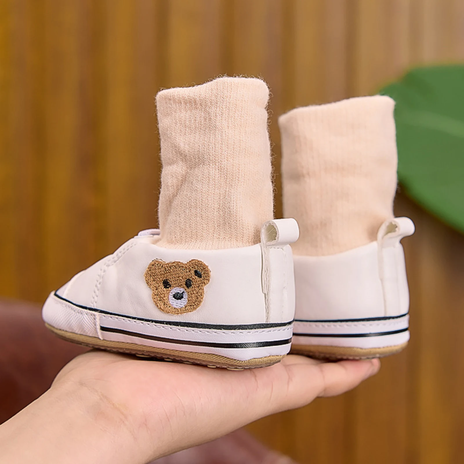 0-12months Baby girls boys First Walking Shoes Cartoon Bear Non-slip Soft Sole High Sock Shoes Sneakers $6.39