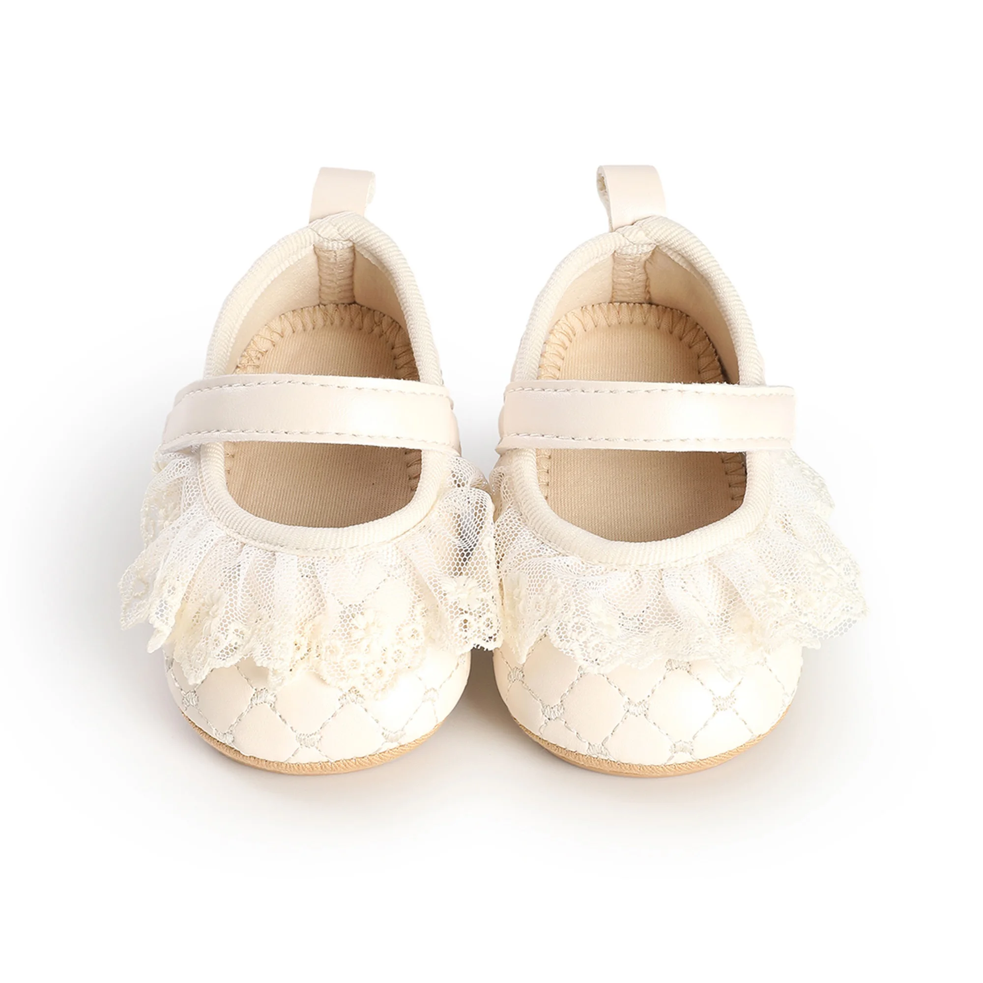 Fashion Baby Girl Casual Leather Shoes Exquisite Lace Bowknot Solid Color Princess Wedding Walking Shoes Soft Non-slip Flat Sole $6.59
