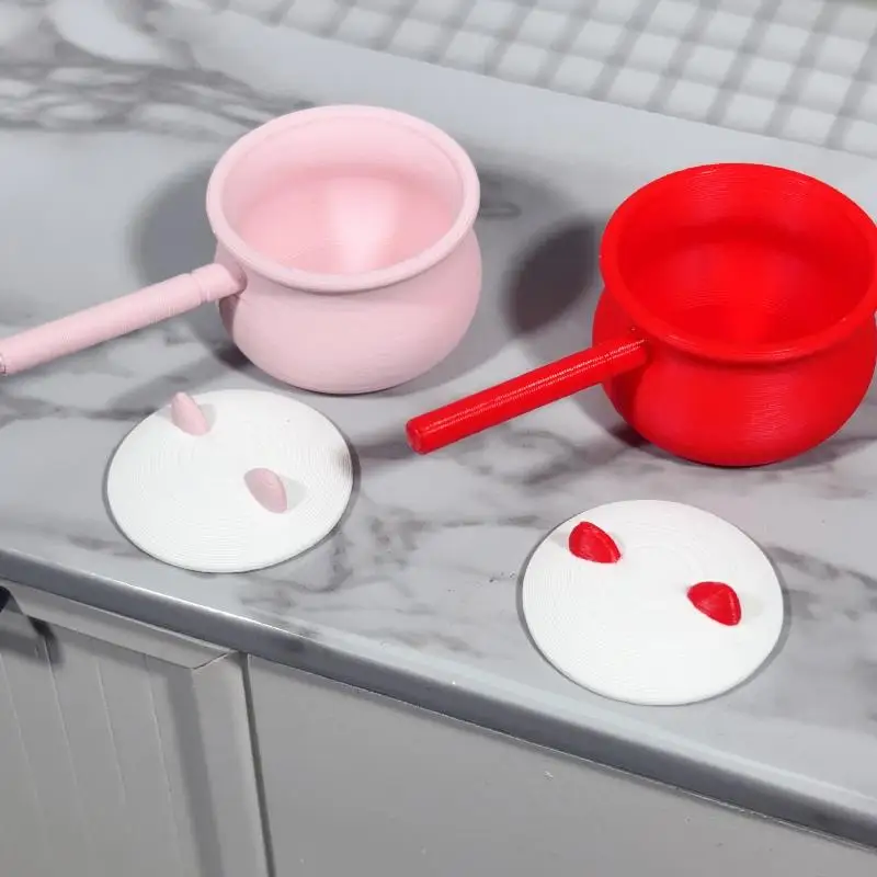 1Pc 1:12 Scale Dollhouse Miniature Red Pink Soup Milk Frying Pan With Lid Pot Model Kitchen DIY Accessories Decor $3.52