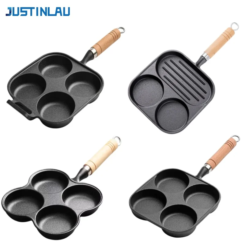 JUSTINLAU 3/4 Grid Cast Iron Frying Pan Eggs Burger Skillet Non-stick Flat-bottom Pot Breakfast Bread/Steak Pan Kitchen Cookware $24.93
