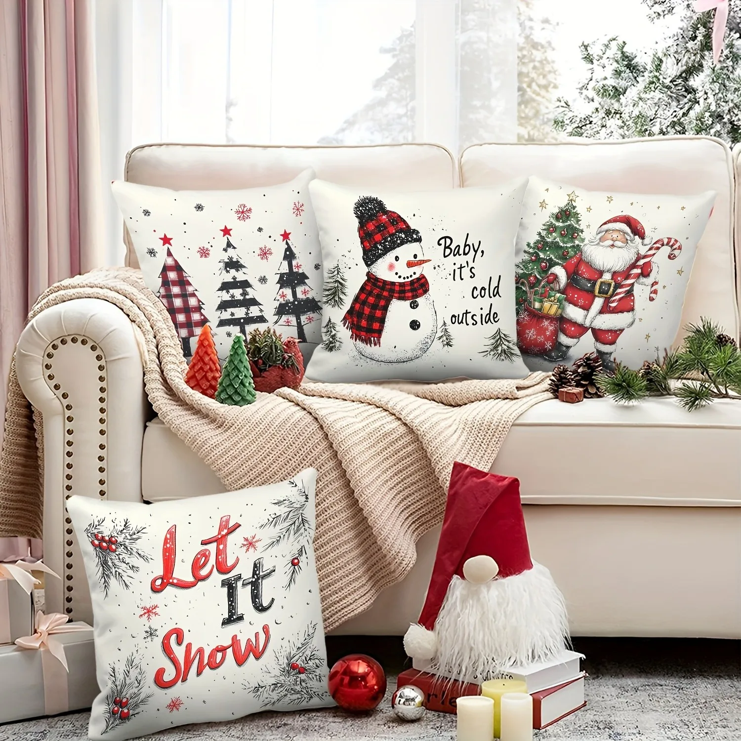 Fundas de almohada navideñas festivas: ¡Le Let It Snow, Santa, muñeco de nieve y bebé es un diseño exterior frío! sofás, fundas $7.70